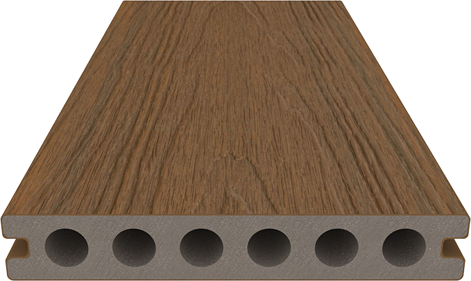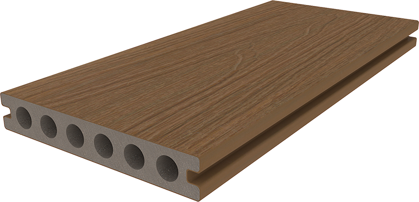 The wide hollow grooved board can be installed with the Hidden Fastening System leaving a screw free surface. The wider hollow gives a more premium look to your deck.